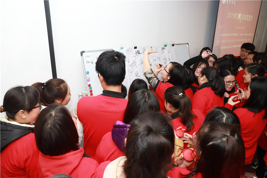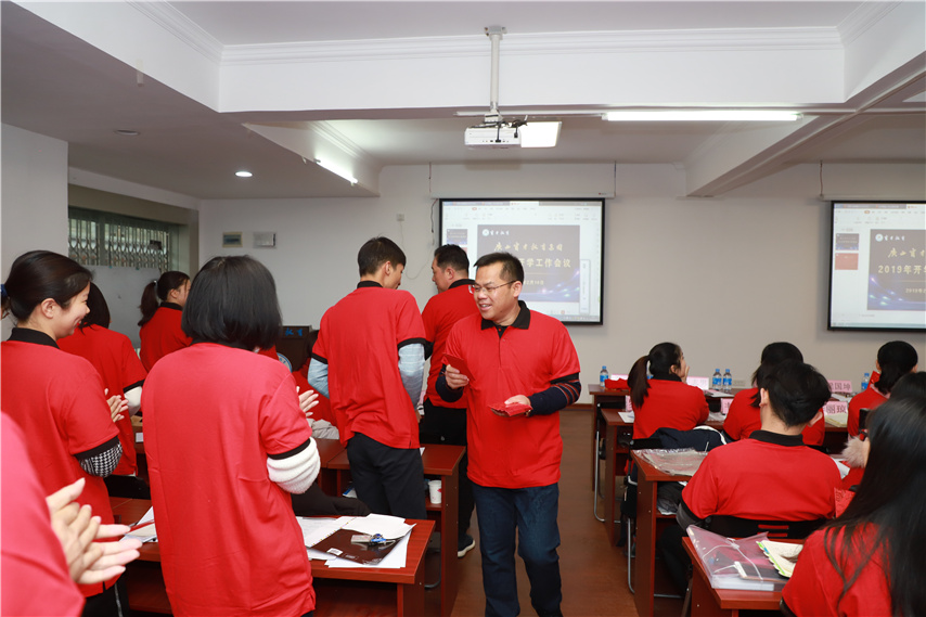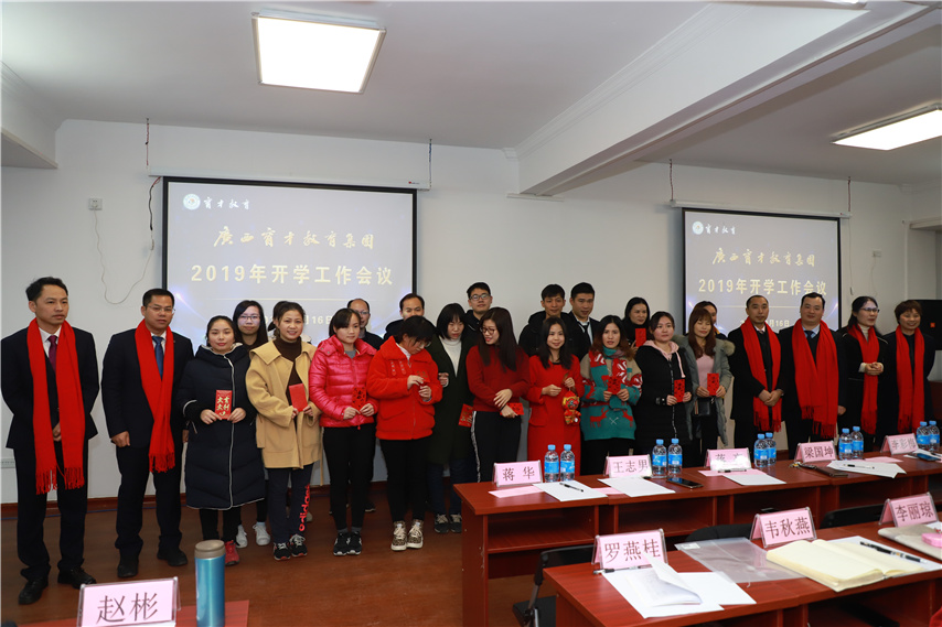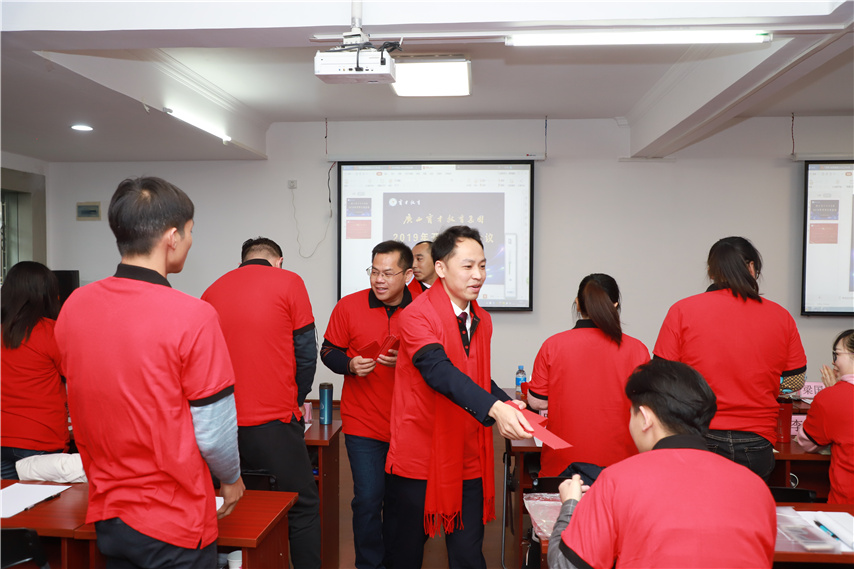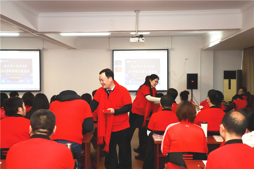 會前,領(lǐng)導(dǎo)班子給全體教職工派發(fā)了開年紅包,并致以新春的美好祝福。全體教職工換上整齊的“紅裝”,立志要在2019年讓集團發(fā)展更紅火。