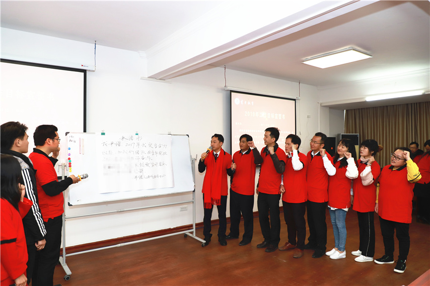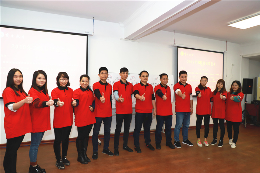各部門、運營中心負(fù)責(zé)人代表團隊在會上簽訂了2019年工作目標(biāo)承諾書,并與團隊成員一起宣誓,承諾完成2019年集團下達給部門和運營中心的工作目標(biāo)和任務(wù),否則將自愿接受相應(yīng)的懲罰。