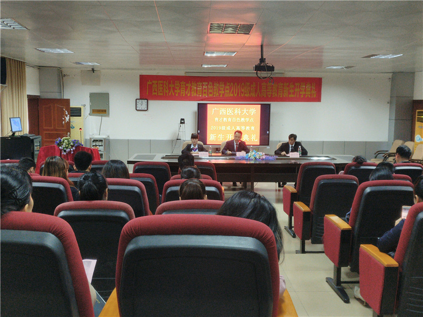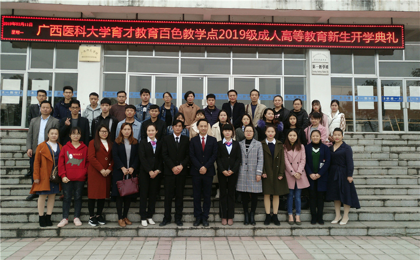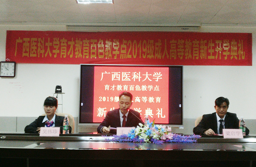 3月16日上午,廣西醫(yī)科大學(xué)育才教育百色教學(xué)點(diǎn)2019級(jí)成人高等教育新生開學(xué)典禮在百色分校順利舉行,集團(tuán)副總經(jīng)理、南寧運(yùn)營(yíng)中心總監(jiān)王志、百色分校副校長(zhǎng)梁?jiǎn)W(xué)、教學(xué)管理老師吳偉珍、李國(guó)紅以及近40名新生代表參加了典禮,典禮由梁?jiǎn)W(xué)老師主持。