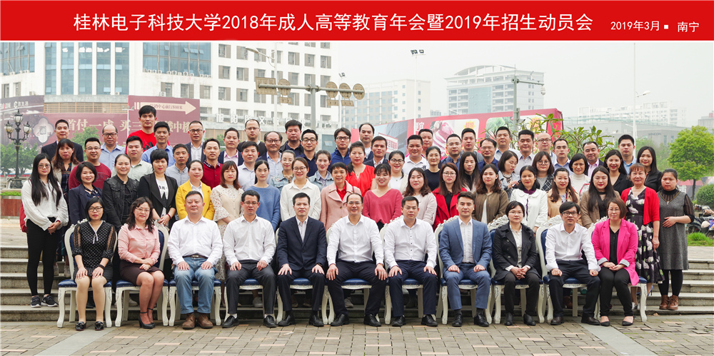 3月22日,桂林電子科技大學(xué)2018年成人高等教育年會(huì)暨2019年招生動(dòng)員會(huì)在南寧市勝利召開。繼續(xù)教育學(xué)院院長高文強(qiáng)、副院長周建豐、相關(guān)科室老師以及校外教學(xué)(點(diǎn))站負(fù)責(zé)人等近70人參加會(huì)議,會(huì)議由周建豐副院長主持。 我函授站站長蔣華、副站長王志男參加了會(huì)議。