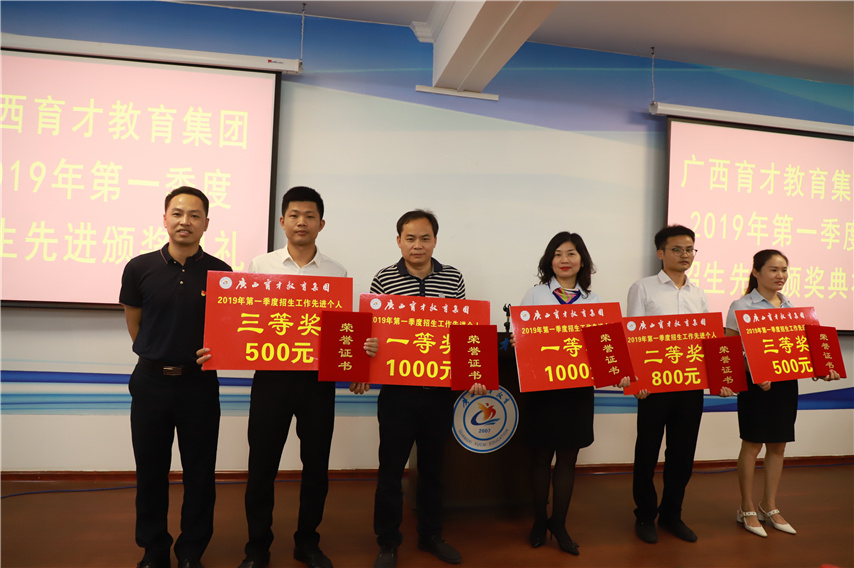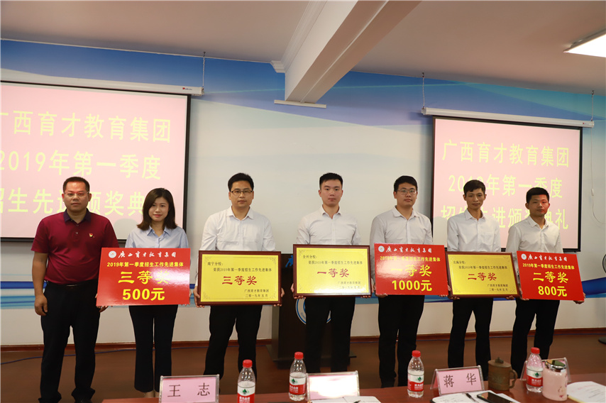 會(huì)議對(duì)2019年一季度招生先進(jìn)集體及招生先進(jìn)個(gè)人進(jìn)行了表彰,副總經(jīng)理王志男宣讀了《廣西育才教育集團(tuán)2019年季度招生先進(jìn)集體及招生先進(jìn)個(gè)人獎(jiǎng)勵(lì)辦法(試行)》和《廣西育才教育集團(tuán)關(guān)于表彰2019年季度招生先進(jìn)集體及招生先進(jìn)個(gè)人的表彰決定》,集團(tuán)領(lǐng)導(dǎo)分別為獲獎(jiǎng)的先進(jìn)集體和個(gè)人頒發(fā)了獎(jiǎng)金和證書(shū)。
