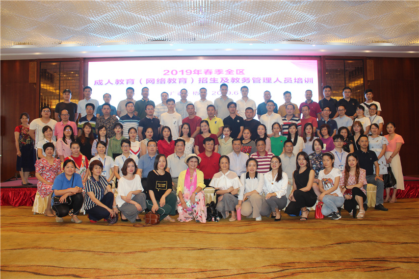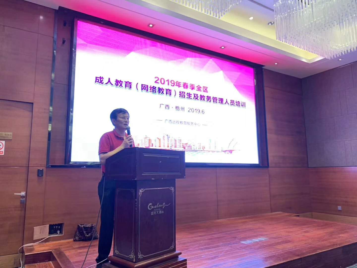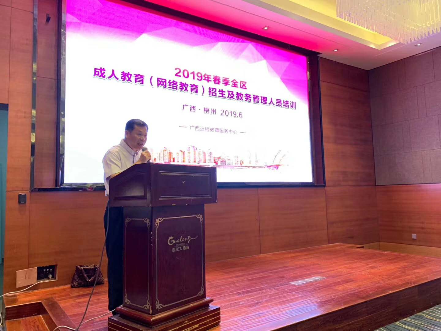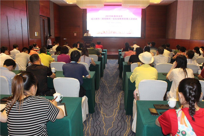 6月13-14日,廣西廣播電視大學(xué)2019年春季全區(qū)成人教育(網(wǎng)絡(luò)教育)招生及教務(wù)管理人員培訓(xùn)會(huì)議在梧州順利召開(kāi),廣西廣播電視大學(xué)副校長(zhǎng)董塔健、網(wǎng)絡(luò)教育學(xué)院院長(zhǎng)陶群、副院長(zhǎng)唐建軍及各教學(xué)點(diǎn)負(fù)責(zé)人和相關(guān)管理人員80余人參加了會(huì)議,育才副校長(zhǎng)王志男、南寧運(yùn)營(yíng)中心副總監(jiān)劉婉麗參加了會(huì)議,會(huì)議由陶群院長(zhǎng)主持。