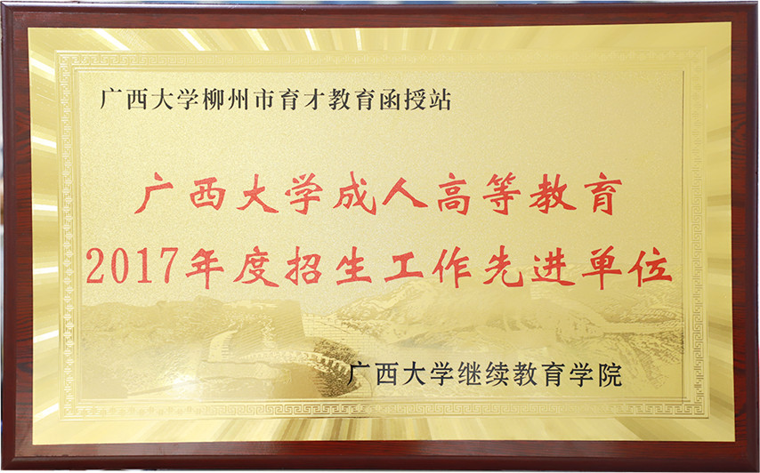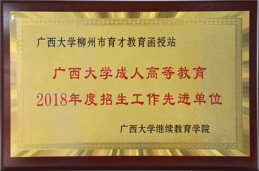 ▲函授站連續(xù)四年榮獲廣西大學(xué)招生工作先進(jìn)單位獎(jiǎng)牌