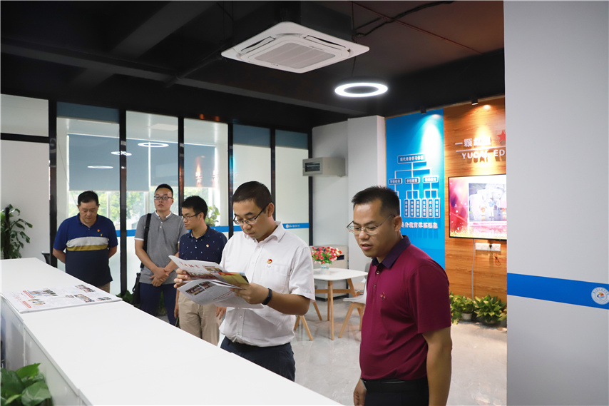▲團市委副書記張揚(右二)參觀黨建孵化站建設