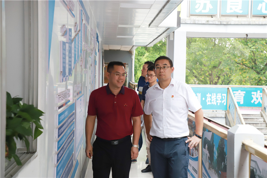 ▲團市委副書記張揚(右一)參觀育才辦學環(huán)境