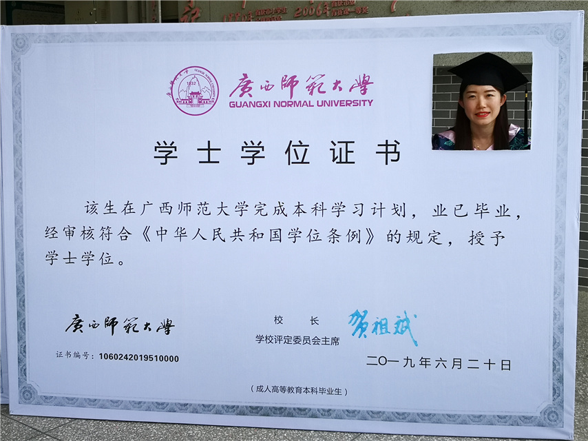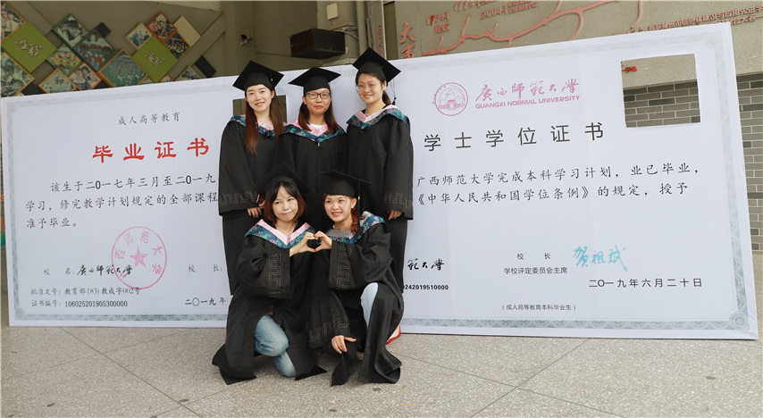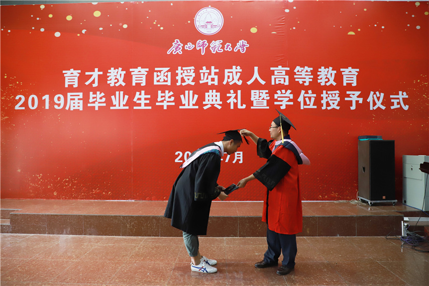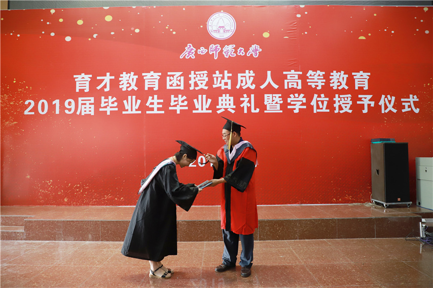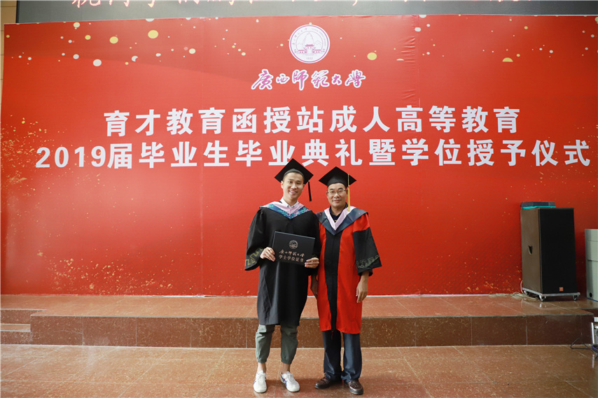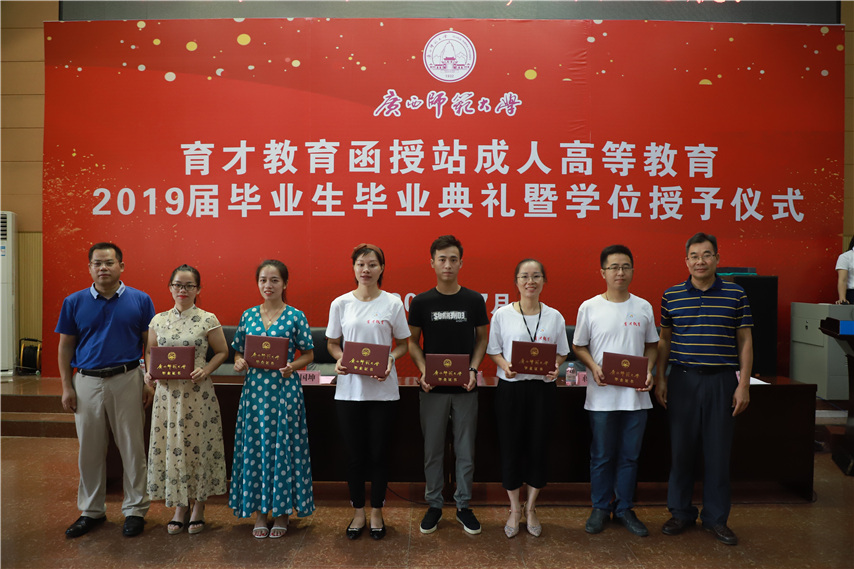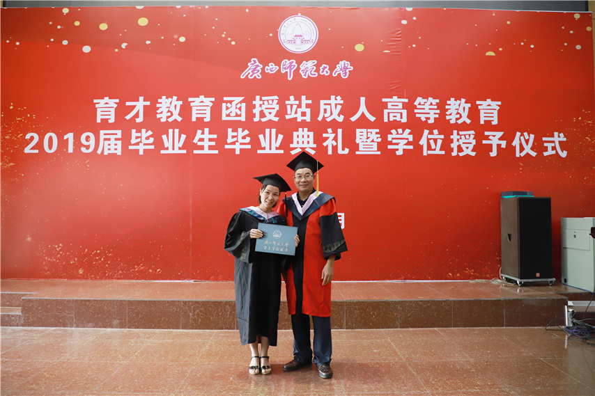 函授站站長(zhǎng)蔣華老師用十個(gè)字概況了自己的講話,一是祝賀,祝賀2019屆畢業(yè)生順利畢業(yè);二是感謝,感謝廣西師范大學(xué)送教上門;三是感恩,常懷一顆感恩的心,關(guān)心和支持廣西師范大學(xué)的發(fā)展;四是提醒,提醒畢業(yè)生妥善保管好畢業(yè)證和畢業(yè)生檔案;五是歡迎,歡迎??频耐瑢W(xué)繼續(xù)報(bào)讀本科學(xué)歷。