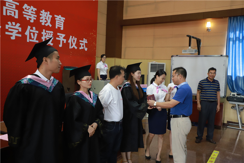 繼續(xù)教育學(xué)院副院長(zhǎng)何創(chuàng)雄為獲得學(xué)士學(xué)位的畢業(yè)生代表行“撥穗禮”、授予學(xué)士學(xué)位。