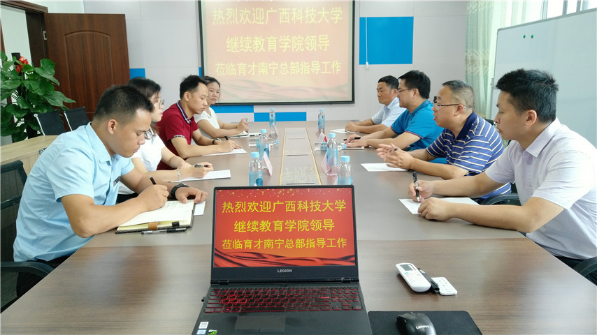 7月31日,廣西科技大學(xué)繼續(xù)教育學(xué)院院長(zhǎng)韋鴻鵬、副院長(zhǎng)楊勝、學(xué)歷教育科科長(zhǎng)吳衛(wèi)龍一行4人蒞臨集團(tuán)南寧總部指導(dǎo)工作,集團(tuán)聯(lián)合黨委副書記、副校長(zhǎng)王志男、南寧運(yùn)營(yíng)中心副總監(jiān)劉婉麗陪同。