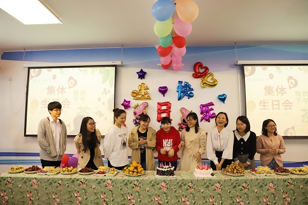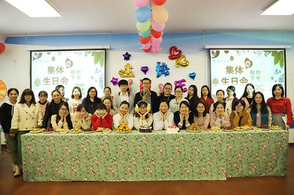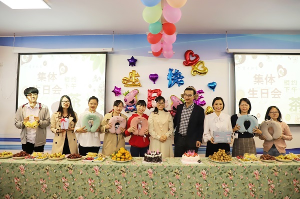 為體現(xiàn)集團(tuán)對教職工的關(guān)懷,增強(qiáng)教職工的向心力與凝聚力,11月8日下午,在集團(tuán)工會的精心布置下,“感恩有你·相約育才”集團(tuán)2019年集體生日會暨下午茶活動在水晶印象409室歡樂舉行,集團(tuán)聯(lián)合黨委宣傳委員、工會主席、副總經(jīng)理王麗以及30余名教職工參加了活動。