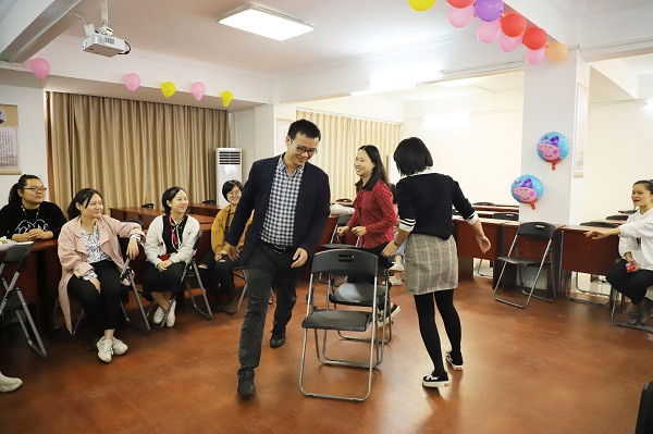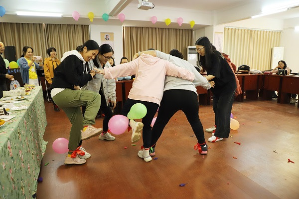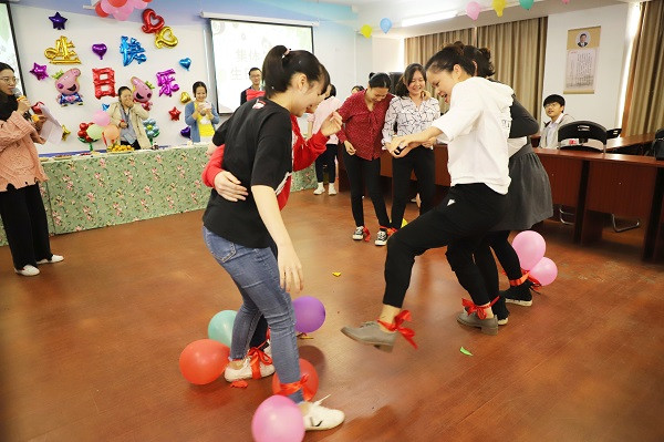 活動以集體生日會和趣味游戲的形式進(jìn)行,游戲活動包括兩個環(huán)節(jié):搶凳子和兩人綁腳踩氣球。趣味游戲尤其注重教職工的參與以及團(tuán)隊(duì)協(xié)作,也考驗(yàn)個人的積極性與靈活性。在盡情游戲之前,參會的所有教職工一起為10位壽星慶生,無比歡樂!