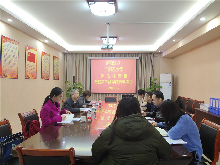 12月12日,廣西民族大學繼續(xù)教育評估檢查組組長李華明書記、副院長唐曉華一行三人蒞臨育才柳州本部進行教學評估檢查,集團聯(lián)合黨委書記、函授站站長蔣華,聯(lián)合黨委副書記、副校長王志男,聯(lián)合黨委紀檢委員、副校長李彩梅參加了匯報會。