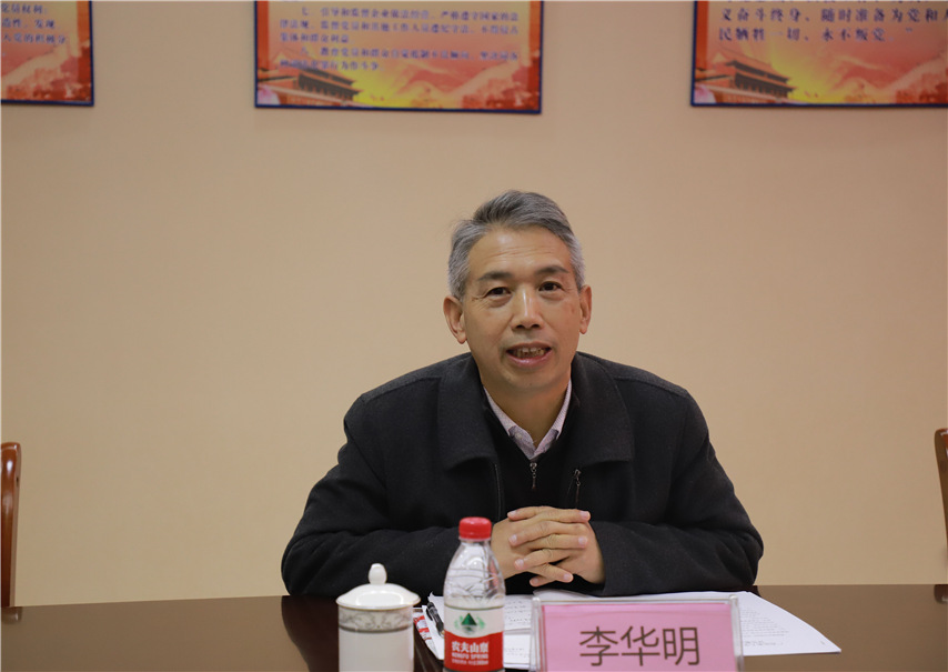 ▲廣西民族大學繼續(xù)教育教學評估組組長李華明書記講話