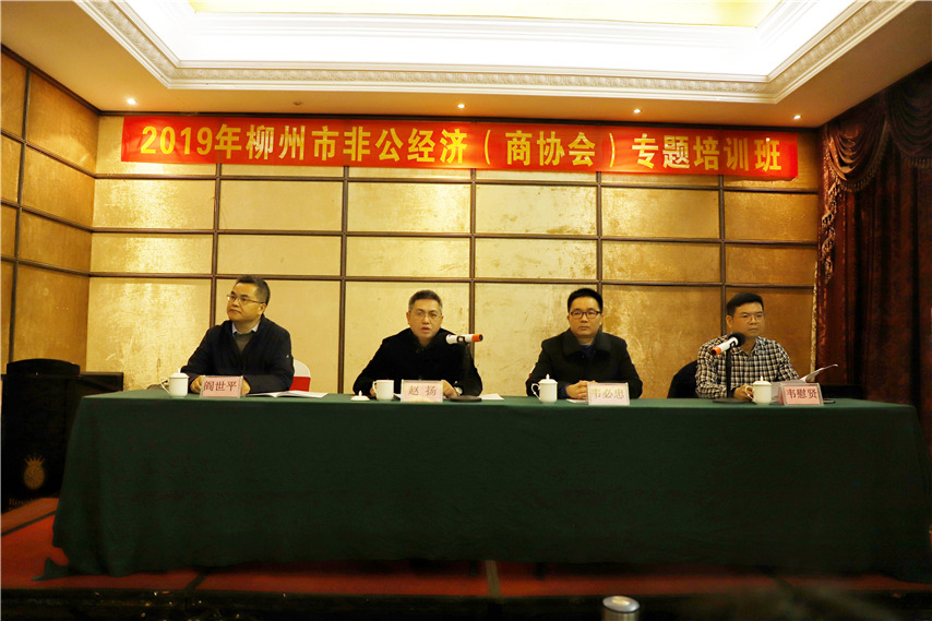 12月25日,由柳州市委統(tǒng)戰(zhàn)部主辦、桂林電子科技大學(xué)繼續(xù)教育學(xué)院承辦、柳州市育才職業(yè)培訓(xùn)學(xué)校協(xié)辦,為期三天的2019年柳州市非公經(jīng)濟(jì)(商協(xié)會(huì))專(zhuān)題培訓(xùn)班,在柳州市兩新組織紅色學(xué)院順利開(kāi)班,柳州市委統(tǒng)戰(zhàn)部副部長(zhǎng)趙揚(yáng)出席開(kāi)班儀式并作講話(huà)、桂林電子科技大學(xué)繼續(xù)教育學(xué)院副院長(zhǎng)韋必忠,市委統(tǒng)戰(zhàn)部副調(diào)研員、市非公辦副主任韋慰賢參加開(kāi)班儀式,來(lái)自全市有關(guān)行業(yè)、異地商協(xié)會(huì)共61名會(huì)長(zhǎng)、秘書(shū)長(zhǎng)及商會(huì)高層管理人員參加了學(xué)習(xí)培訓(xùn)。