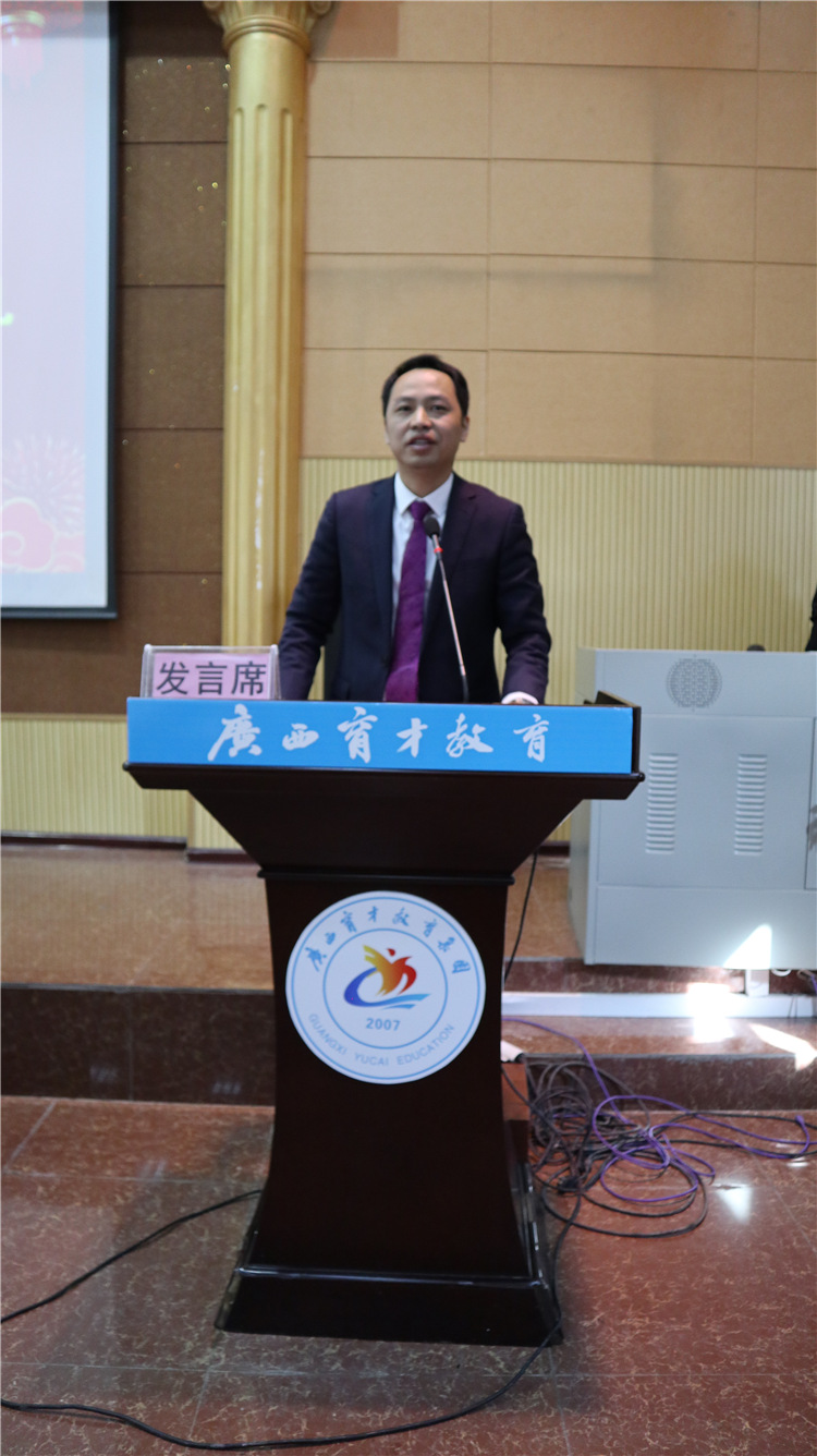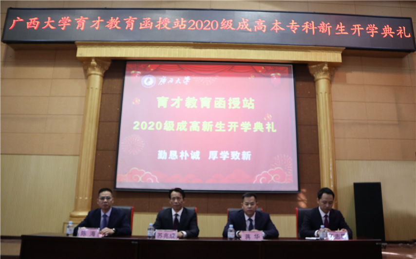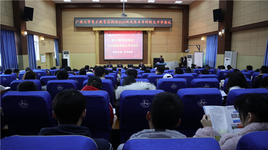 1月12日上午,廣西大學(xué)育才教育函授站2020級成高新生開學(xué)典禮在柳州本部順利召開,廣西大學(xué)繼續(xù)教育學(xué)院院長蘇兆成,副院長陳海,招生工作管理科科長梁海萍,院辦副主任陳義群,集團(tuán)聯(lián)合黨委書記、董事長、函授站站長蔣華,聯(lián)合黨委副書記、副校長、函授站副站長王志以及來自柳州各行各業(yè)的170余名新生代表參加了開學(xué)典禮,儀式由副站長王志主持。