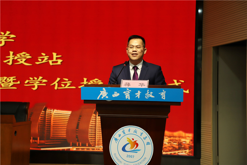 函授站站長蔣華向2020屆畢業(yè)生表示衷心的祝賀,他介紹了本屆畢業(yè)生的情況,并對廣西醫(yī)科大學送教上門、柳州市人民醫(yī)院提供教學場地以及函授站老師的辛苦付出表示感謝;希望同學們能夠繼續(xù)發(fā)揚克服困難完成學業(yè)的拼搏精神,要懷著一顆感恩的心,關心母校和函授站的發(fā)展,同時在自己的工作崗位上作出貢獻,為母校增光,為自己創(chuàng)造更輝煌的人生,報效社會;希望大家樹立終身學習的意識,已經(jīng)取得醫(yī)學類??茖W歷的畢業(yè)生門可以繼續(xù)報讀母校的本科進行學習,對此,函授站站將給予大力的支持,更好地做好服務。