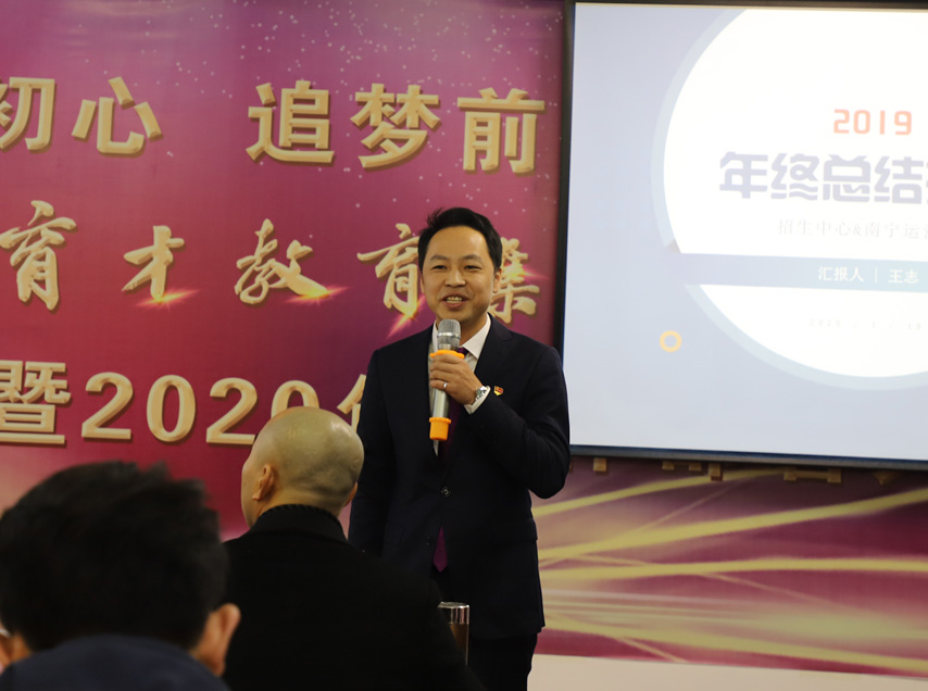 ▲集團聯(lián)合黨委副書記、副總經理、副校長王志作招生中心和南寧運營中心述職報告