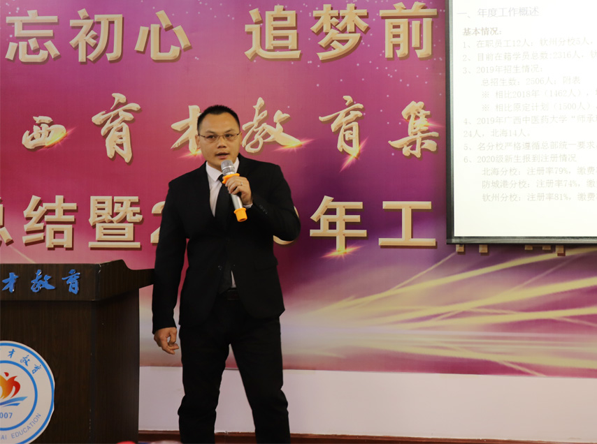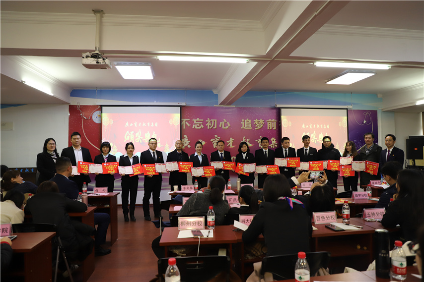 1月18日,集團2019年年終工作總結暨2020年工作部署大會在柳州本部隆重舉行。集團聯(lián)合黨委書記、董事長、總經理、培訓學院院長蔣華、集團總校校長梁國坤、集團聯(lián)合黨委副書記、副總經理、副校長王志、集團聯(lián)合黨委紀檢委員、副總經理、副校長李彩梅、集團聯(lián)合黨委委員、副總經理、副校長蔣亮、集團聯(lián)合黨委宣傳委員、副總經理、副校長王麗、集團聯(lián)合黨委委員、培訓學院副院長趙彬等黨政領導班子成員及全體教職工參加了大會。