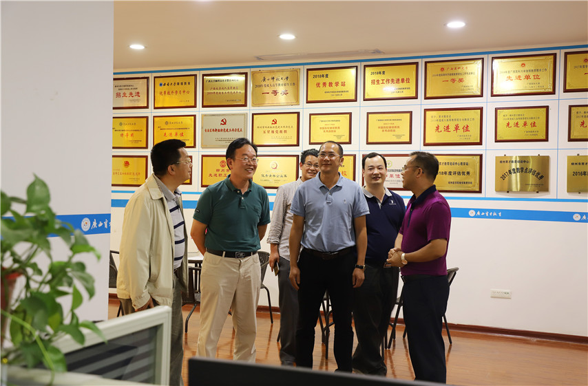 6月5日,桂林電子科技大學(xué)校黨委常委、總會(huì)計(jì)師曹輝景、副校長(zhǎng)李文軍、繼續(xù)教育學(xué)院院長(zhǎng)高文強(qiáng)、副院長(zhǎng)周建豐、院辦主任程華一行蒞臨育才柳州本部檢查指導(dǎo)。集團(tuán)聯(lián)合黨委書(shū)記、董事長(zhǎng)蔣華、總校校長(zhǎng)梁國(guó)坤等黨政班子領(lǐng)導(dǎo)陪同檢查。
