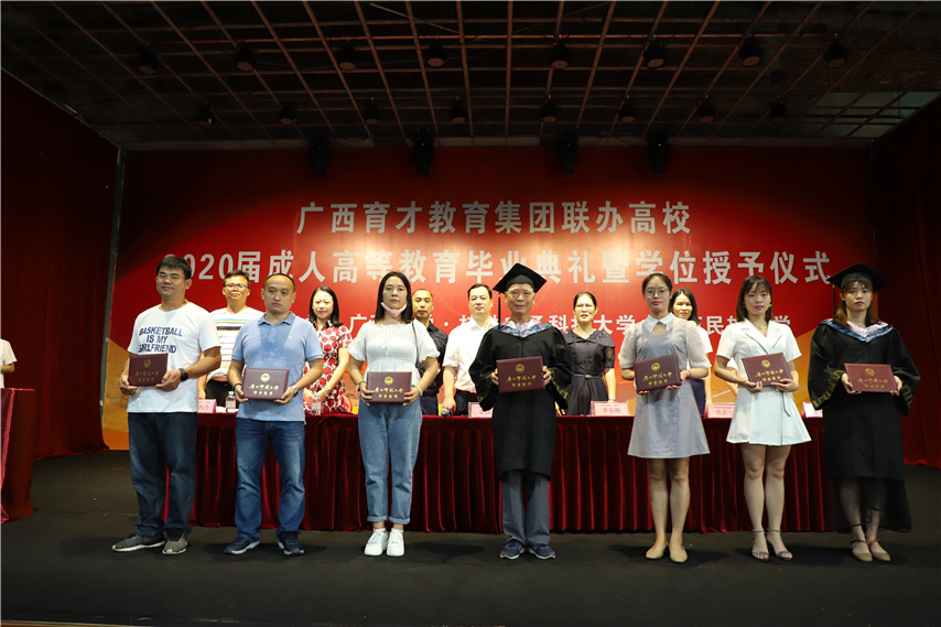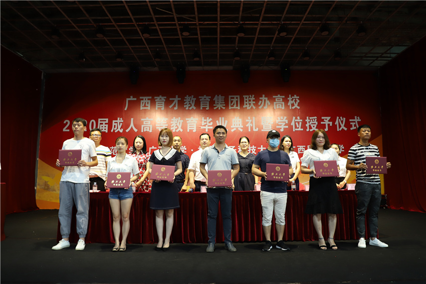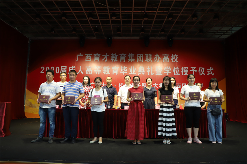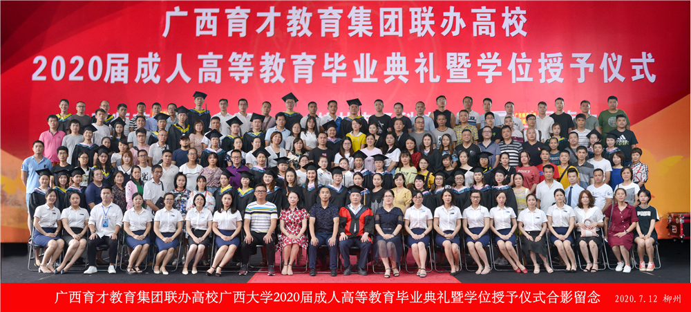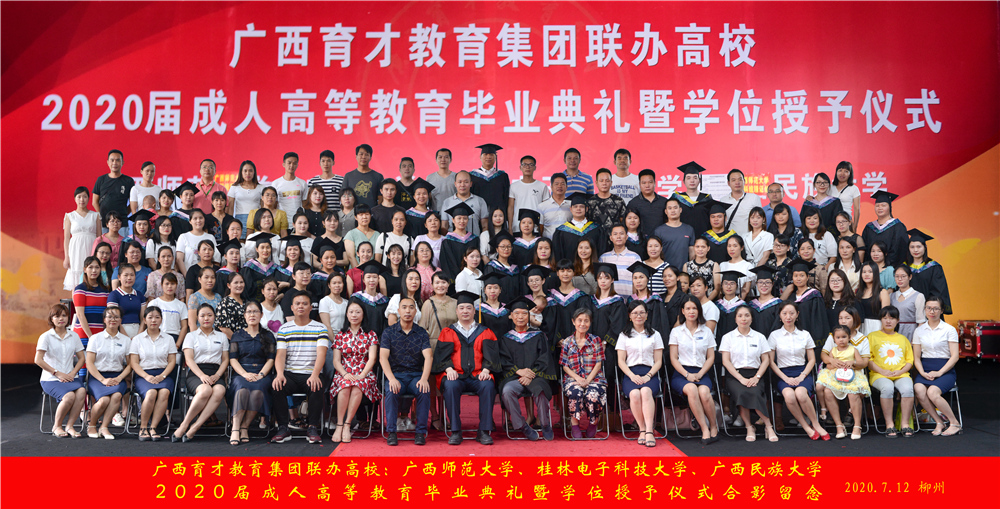 7月12日,集團聯(lián)辦的廣西大學(xué)、廣西師范大學(xué)、桂林電子科技大學(xué)、廣西民族大學(xué)2020屆成人高等教育畢業(yè)生畢業(yè)典禮(柳州區(qū)域)暨學(xué)位授予儀式順利舉行。