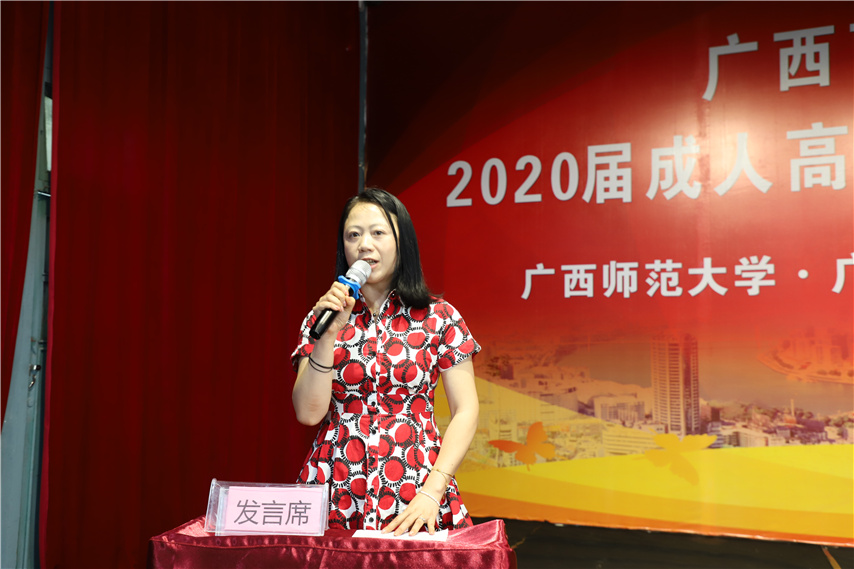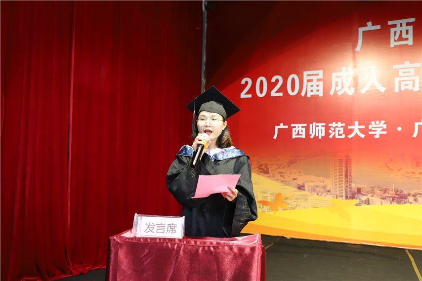 ▲2020屆廣西大學(xué)漢語言文學(xué)專業(yè)專升本的吳美霞同學(xué)作為畢業(yè)生代表發(fā)言