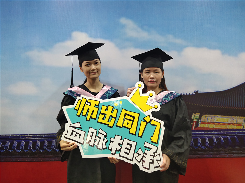 ▲集團聯(lián)合黨委委員、副校長李彩梅為阮學(xué)林整理學(xué)士服