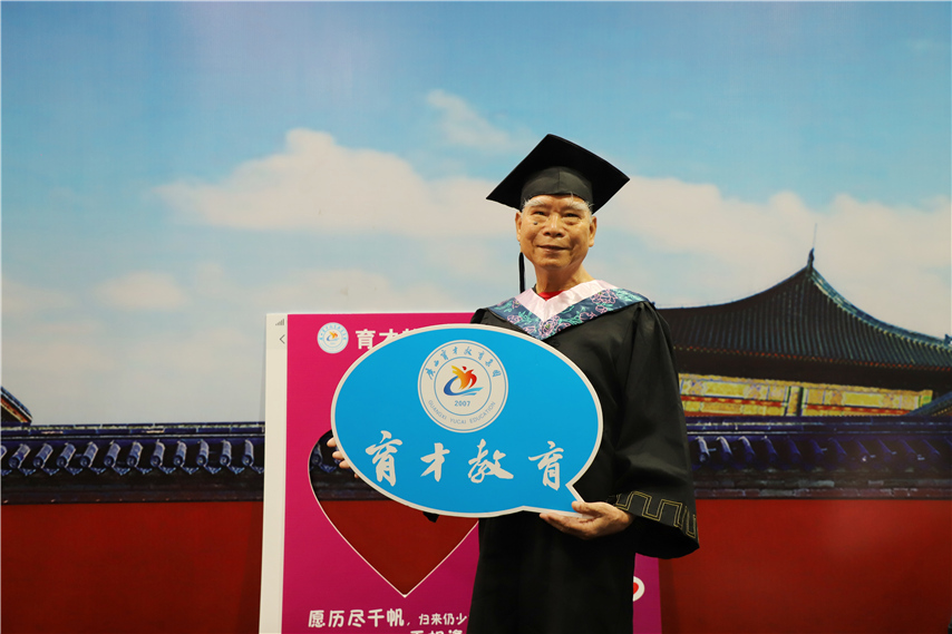 為了圓自己長達(dá)半個世紀(jì)的大學(xué)夢,今年76歲高齡的阮學(xué)林老人,2014年通過成人高考考上廣西師范大學(xué)語文教育???,2017年7月完成學(xué)業(yè),順利獲得??飘厴I(yè)證,老人的夢想應(yīng)當(dāng)已經(jīng)實現(xiàn),然而阮學(xué)林老人并沒有滿足,他的目標(biāo)是本科,畢業(yè)典禮上,他毫不猶豫的向育才的老師報讀了廣西師范大學(xué)的漢語言文學(xué)專業(yè)本科。
