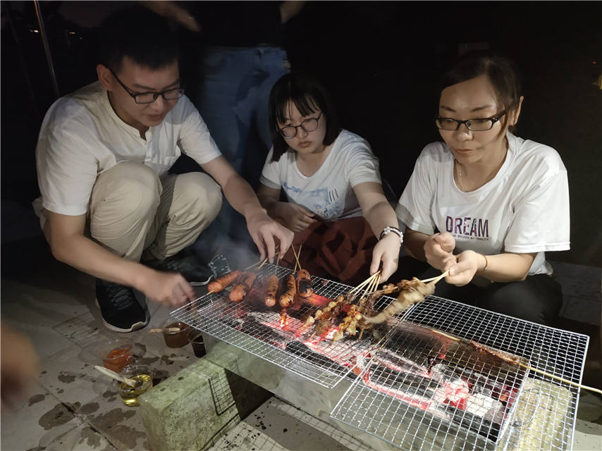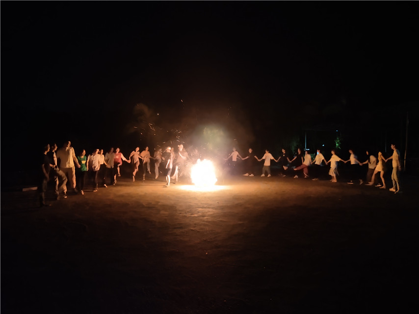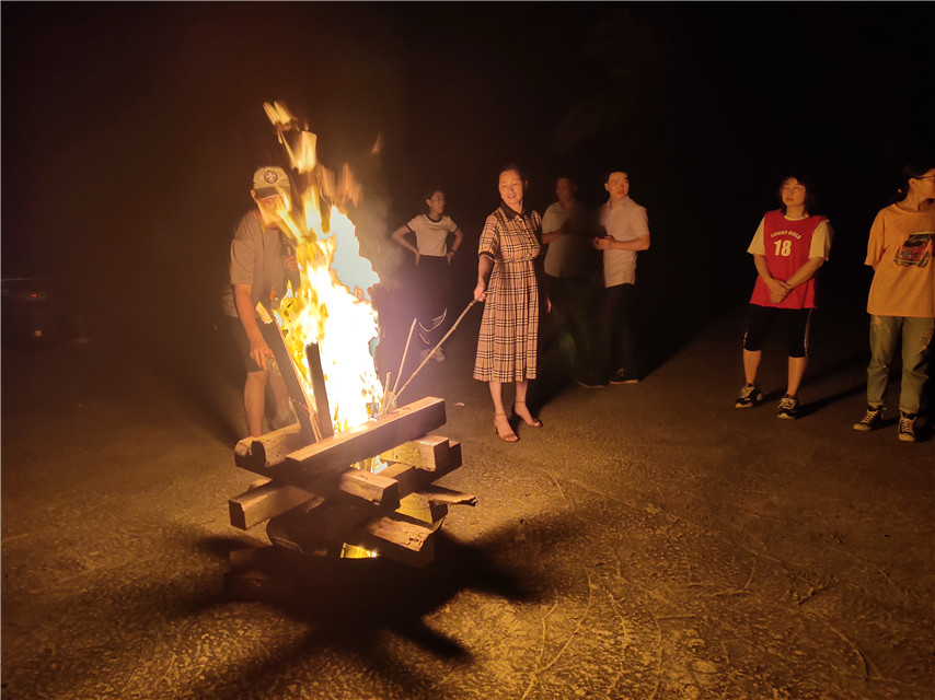 隨著會(huì)議培訓(xùn)的結(jié)束,我們轉(zhuǎn)移到篝火晚會(huì)活動(dòng)地點(diǎn),通過軍訓(xùn)似的培訓(xùn),每一個(gè)人都迅速的進(jìn)入了狀態(tài)。星星之火,照亮了整個(gè)夜晚。大家手拉著手唱歌、跳舞、燒烤。