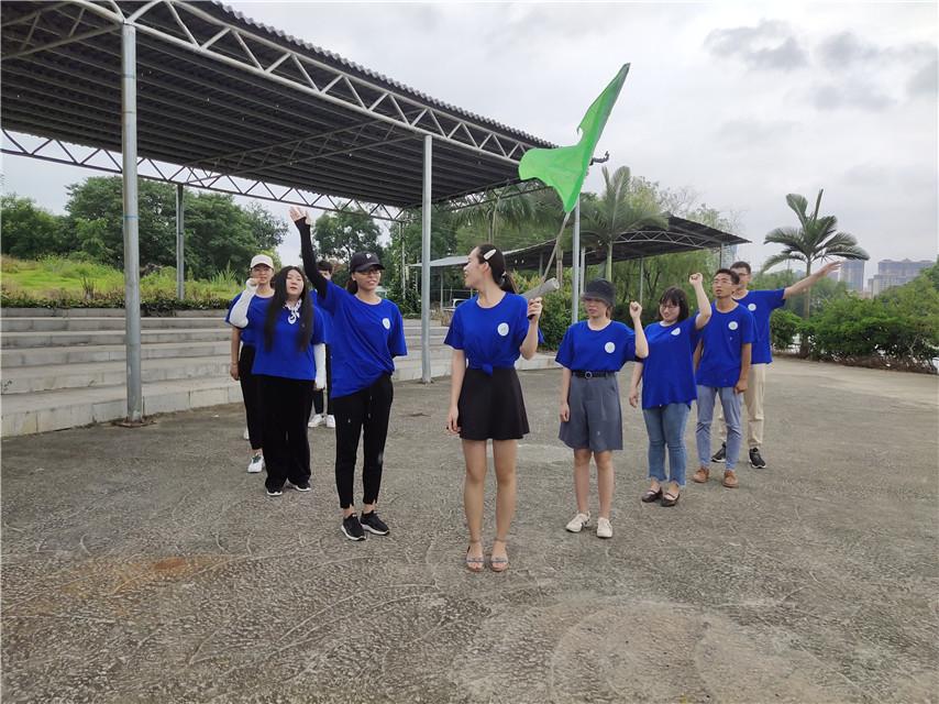 組隊(duì),設(shè)隊(duì)長(zhǎng),授隊(duì)旗,整隊(duì)形,唱隊(duì)歌,開始一天的拓展訓(xùn)練。