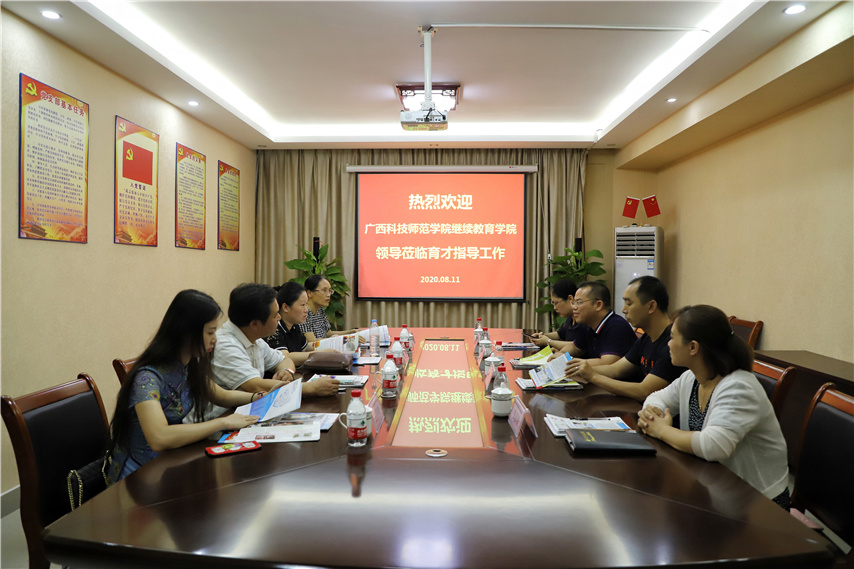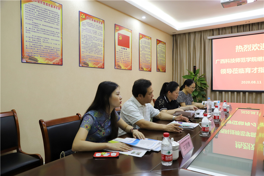 8月11日,廣西科技師范學(xué)院繼續(xù)教育學(xué)院院長(zhǎng)鄭盛錦一行4人蒞臨集團(tuán)柳州本部指導(dǎo)工作。集團(tuán)黨委書記、董事長(zhǎng)蔣華等黨政領(lǐng)導(dǎo)參加了座談會(huì)。