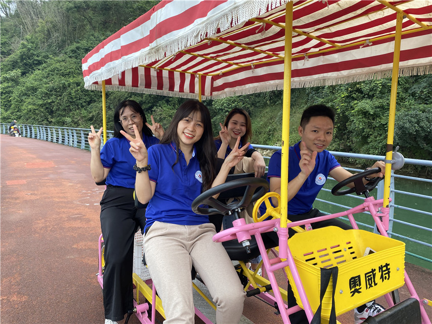 騎行中大家歡歌笑語,放下了工作中的忙碌,放飛自我,享受難得的愜意時光,結(jié)伴向前,正如日常工作中大家協(xié)同合作,奮勇向前。