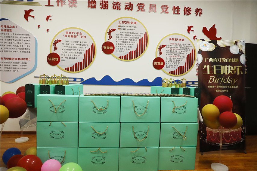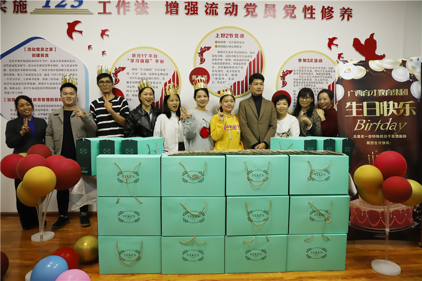 集團工會為壽星們精心準備了精美生日禮物,10月下旬,大家?guī)е鹈?,帶著微笑,帶著祝福,齊聚集團本部柳州水晶印象206室共同慶生,集團30余名教職工參加。