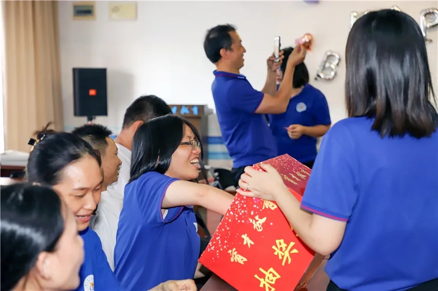 活動(dòng)以集體生日會(huì)和趣味游戲的形式進(jìn)行,游戲活動(dòng)包括兩個(gè)環(huán)節(jié):滿載而歸和正話反說。前者主要注重教職工的參與及團(tuán)隊(duì)協(xié)作,后者注重考驗(yàn)個(gè)人的靈活性與積極性。通過游戲排名,優(yōu)先抽取精美禮物,加油,壽星們!