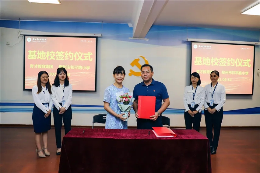 ▲集團與柳州市和平路小學(代表小學學段)舉行基地校簽約儀式