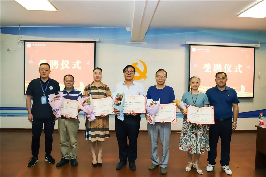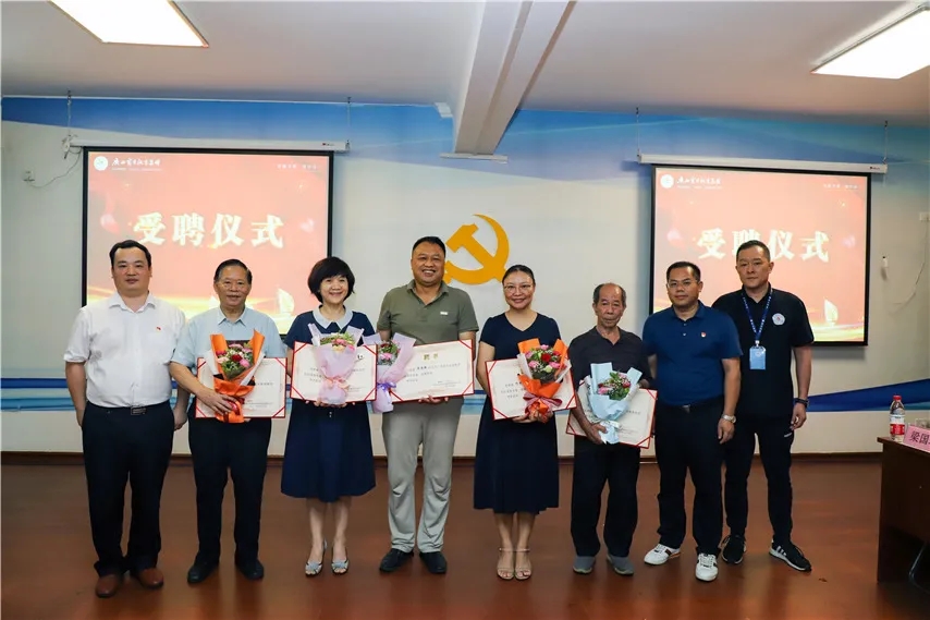 ▲集團黨委書記、董事長蔣華為來自南寧、賀州和柳職院受聘專家頒發(fā)聘書!