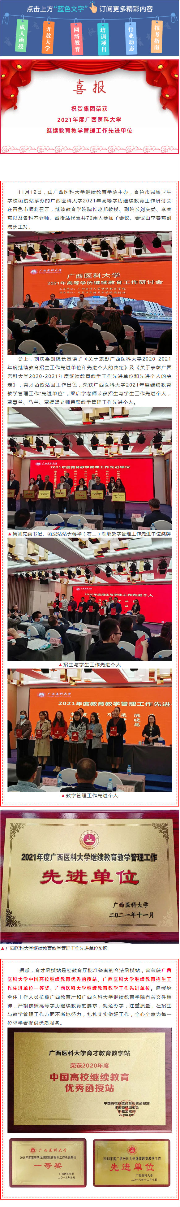 喜報(bào)丨祝賀集團(tuán)榮獲廣西醫(yī)科大學(xué)繼續(xù)教育教學(xué)管理工作先進(jìn)單位