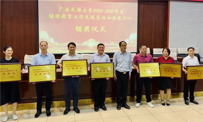會上對廣西民族大學2020-2021年度繼續(xù)教育工作的先進集體和先進個人進行了表彰,因工作出色,我函授站榮獲廣西民族大學2021年成人高等學歷繼續(xù)教育招生工作“先進單位”,這也是集團與廣西民族大學合作辦學以來連續(xù)4年榮獲廣西民族大學成人高等教育招生工作“先進單位”。黃貴鳳、黃濤、陶春瑩等三位老師榮獲“先進個人”榮譽稱號。