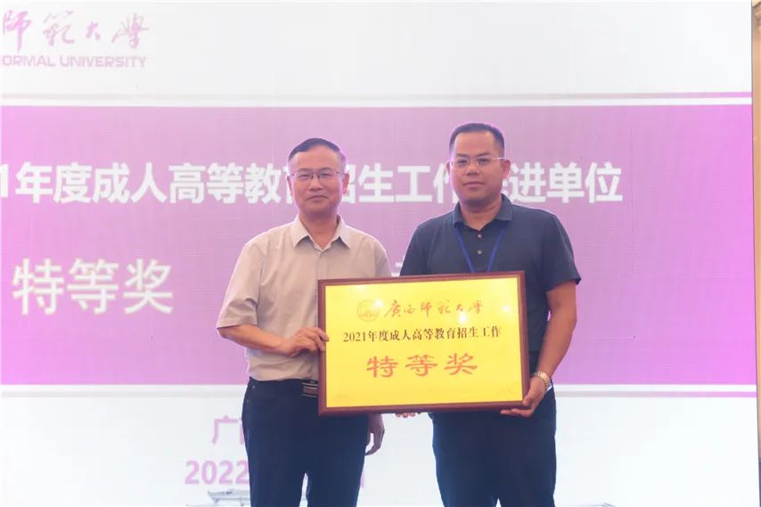 會議表彰了2021年度成人高等教育招生工作先進(jìn)單位,因工作出色,我教學(xué)點(diǎn)榮獲廣西師范大學(xué)2021年度成人高等教育招生工作“特等獎”,這是集團(tuán)與廣西師范大學(xué)合作辦學(xué)以來,第12次榮獲廣西師范大學(xué)成人高等教育招生工作“特等獎”。2020年還榮獲廣西師范大學(xué)中國高校繼續(xù)教育優(yōu)秀函授站。