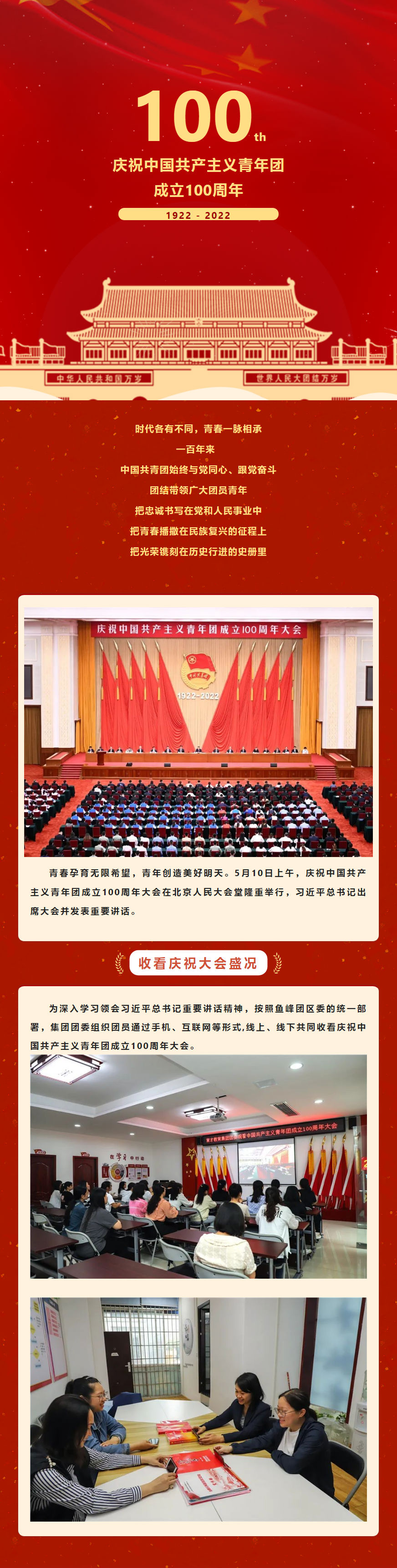 集團(tuán)團(tuán)委組織收看中國(guó)共青年團(tuán)成立100周年大會(huì)