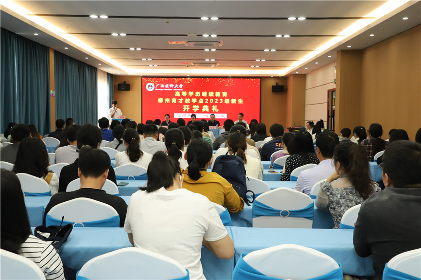 4月20日上午,廣西醫(yī)科大學高等學歷繼續(xù)教育柳州育才教學點2023級新生開學典禮在集團屏山校區(qū)隆重舉行,廣西醫(yī)科大學繼續(xù)教育學院副院長劉慶委、李春燕,集團黨委書記、董事長、教學點負責人蔣華,柳州市委組織部派駐集團黨委第一書記冼慶榮以及來自柳州醫(yī)藥衛(wèi)生系統(tǒng)的80余名新生代表參加了開學典禮。