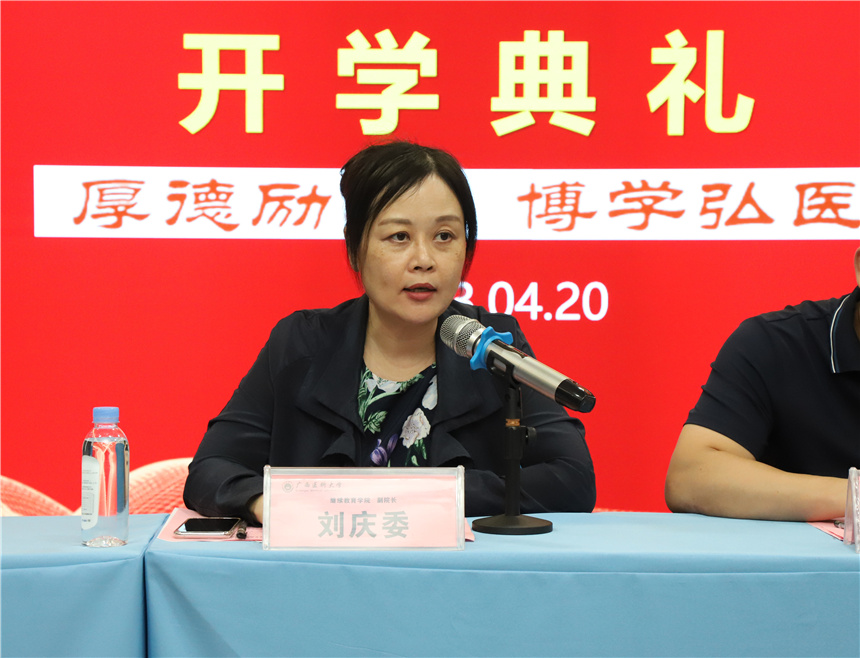 ▲廣西醫(yī)科大學繼續(xù)教育學院副院長劉慶委講話