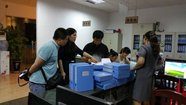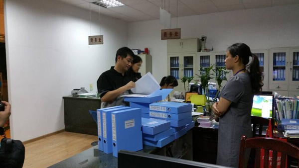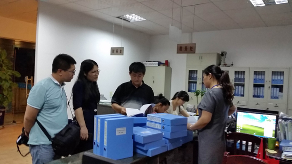 育才教務處韋主任把教學管理材料交給檢查組查閱