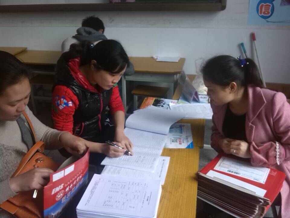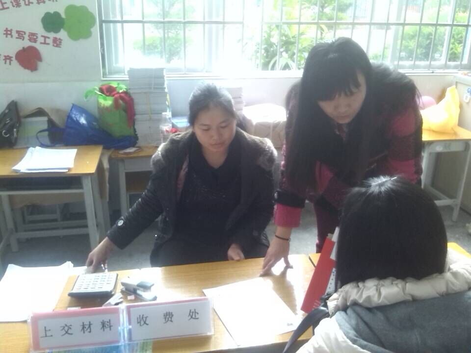 老師在指導(dǎo)同學(xué)們填寫入學(xué)資料