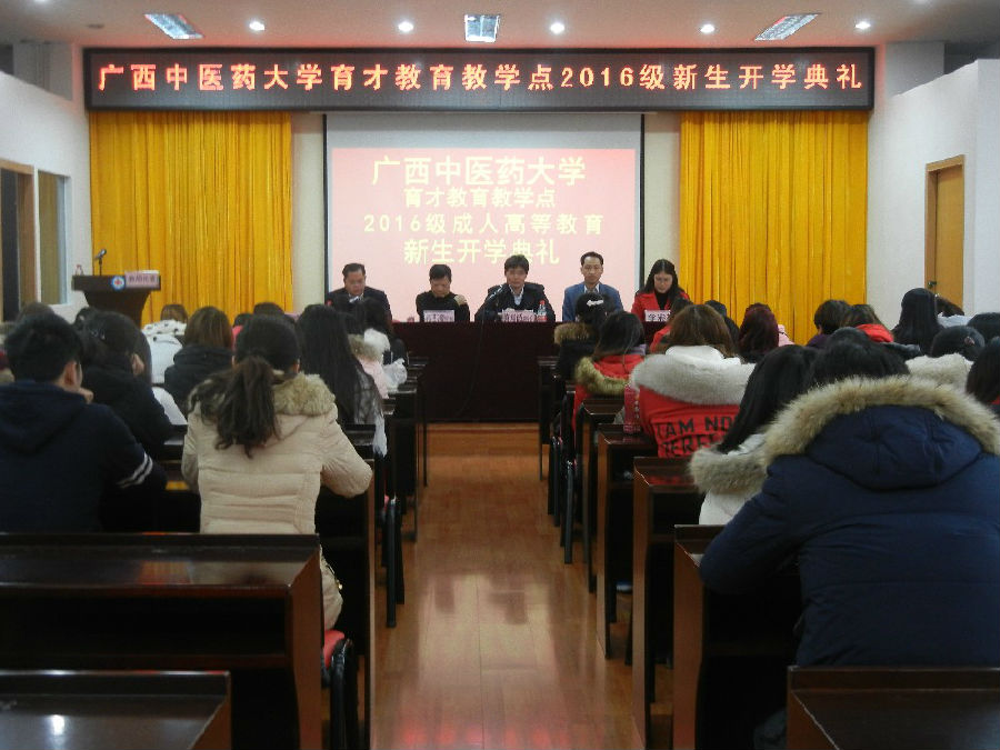 又是一年春草綠,又是一年花盛開。懷揣新的希望和夢想,2016年1月23日上午10:00,廣西中醫(yī)藥大學(xué)育才教育教學(xué)點(diǎn)2016級(jí)成人高等教育新生開學(xué)典禮在柳州市中醫(yī)院隆重舉行。廣西中醫(yī)藥大學(xué)成教院韋艾凌院長、黃瑞誠副院長出席了開學(xué)典禮,韋艾凌院長作了重要講話。廣西育才教育集團(tuán)董事長、廣西中醫(yī)藥大學(xué)育才教育教學(xué)點(diǎn)負(fù)責(zé)人蔣華老師,育才教育王志校長、李彩梅副校長以及來自柳州各大醫(yī)院、衛(wèi)生院、醫(yī)藥公司和藥店等200多名新生共同參加了開學(xué)典禮,典禮由廣西中醫(yī)藥大學(xué)成教院黃瑞誠副院長主持。