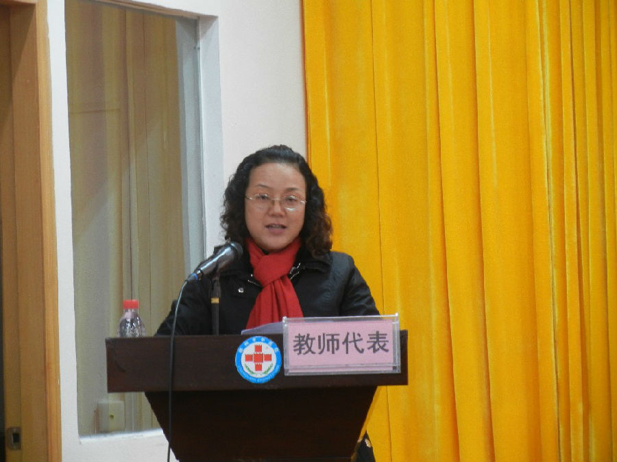 教師代表劉珍蓮代表全體教職工表示將本著“傳道授業(yè)解惑”的宗旨,不斷提高業(yè)務(wù)素質(zhì),認(rèn)真教學(xué),勤奮工作,幫助新同學(xué)們早日成長成才;