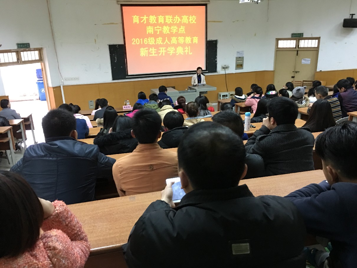 3月13日上午,育才南寧市分校隆重舉行育才聯(lián)辦高校南寧教學(xué)點2016級成人高等教育新生開學(xué)典禮,廣西育才教育集團負責人和育才南寧分校領(lǐng)導(dǎo)滕偉副校長、劉婉麗副校長,以及班主任劉燕老師和熊麗君老師均出席了典禮,來自南寧市區(qū)及各縣的100多名新生代表冒雨前來參加。當天下午,新生開始上公共課。