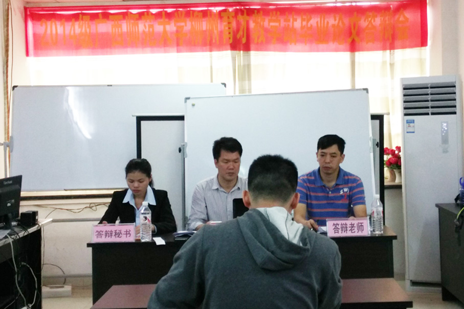 4月23日,育才教育在柳州總部水晶印象大廈舉行了兩場(chǎng)2014級(jí)畢業(yè)生論文專(zhuān)場(chǎng)答辯會(huì),上午是廣西師范大學(xué)專(zhuān)場(chǎng),下午是桂林理工大學(xué)專(zhuān)場(chǎng)。