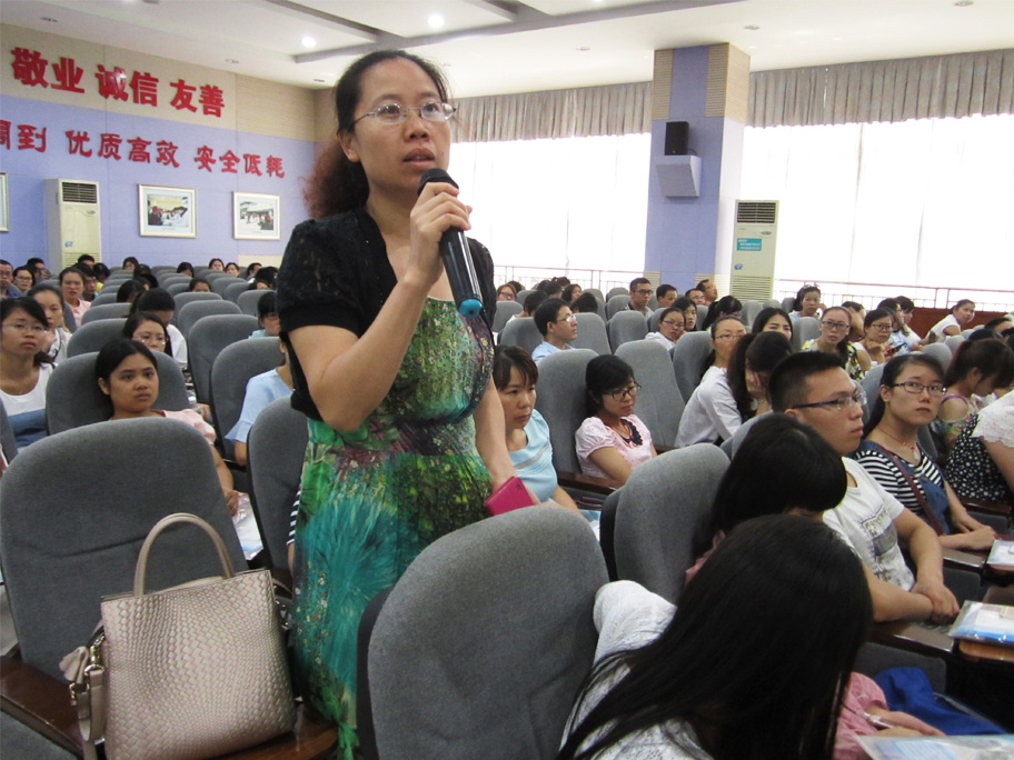 為提升醫(yī)務(wù)人員醫(yī)患溝通水平,掌握了人文醫(yī)學(xué)知識、學(xué)會醫(yī)患溝通技巧和角色扮演,構(gòu)建和諧醫(yī)患關(guān)系,育才教育于2016年6月18日上午邀請了桂林醫(yī)學(xué)院附屬醫(yī)院的邸寧教授,在柳州市人民醫(yī)院第一學(xué)術(shù)廳舉辦《人文醫(yī)學(xué)與醫(yī)療糾紛》專題講座。桂林醫(yī)學(xué)院繼續(xù)教育學(xué)院高東院長、何冰副院長,育才教育黨支部書記蔣華老師、育才教育醫(yī)學(xué)部部長蔣仕榮老師,育才教育王志校長、李彩梅副校長出席講座,受邀的柳州各大醫(yī)院科教科和護理部人員,以及桂林醫(yī)學(xué)院育才教育部分學(xué)員共300多人參加了此次講座。
