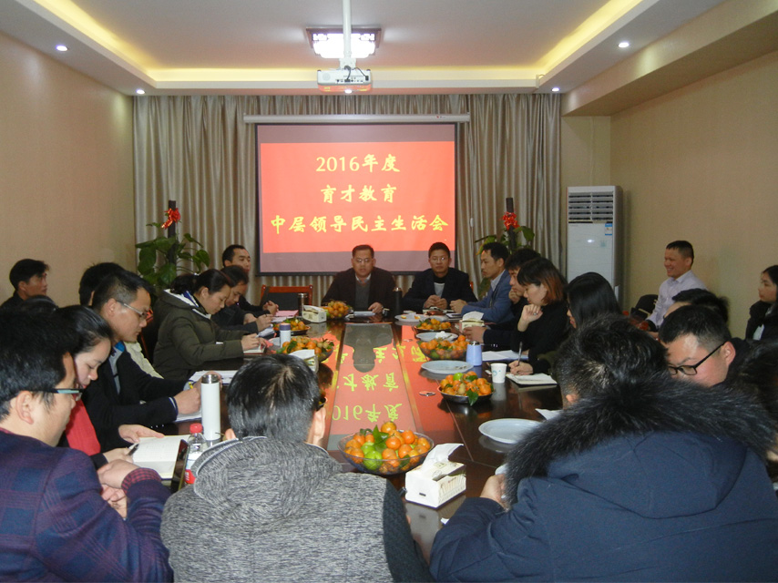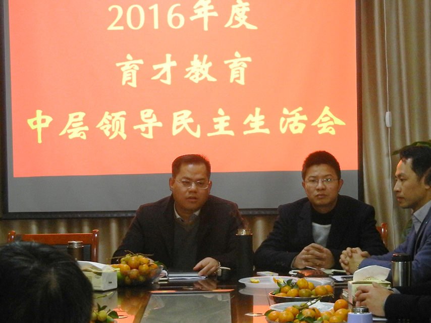 1月20日下午,2016年度育才教育中層領(lǐng)導(dǎo)民主生活會(huì)在育才柳州總部三樓會(huì)議室勝利召開(kāi),育才黨支部書(shū)記、董事長(zhǎng)蔣華、醫(yī)學(xué)部部長(zhǎng)蔣仕榮、育才教育校長(zhǎng)王志、常務(wù)副校長(zhǎng)李彩梅、副校長(zhǎng)蔣亮以及各分校、各部門的中層領(lǐng)導(dǎo)參加了會(huì)議。