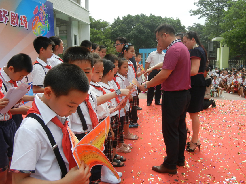 5月31日,2017年東環(huán)路小學(xué)“六一”東環(huán)劇場暨畢業(yè)典禮活動隆重舉行,典禮上,育才教育黨支部書記、董事長蔣華為獲得2017年“育才獎學(xué)金”的學(xué)子頒發(fā)獲獎證書。