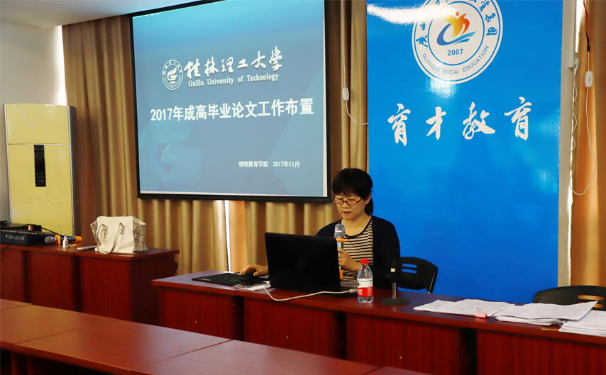 11月12日,桂林理工大學(xué)育才函授站召開(kāi)了2016級(jí)畢業(yè)論文工作布置會(huì)議,桂林理工大學(xué)成教院教務(wù)科科長(zhǎng)劉華老師出席會(huì)議并對(duì)畢業(yè)論文寫作主講,并提出了幾點(diǎn)要求和希望:一是要求畢業(yè)生高度重視畢業(yè)論文寫作;二是做好論文選題,認(rèn)真撰寫;三是杜絕做假論文、抄襲論文。